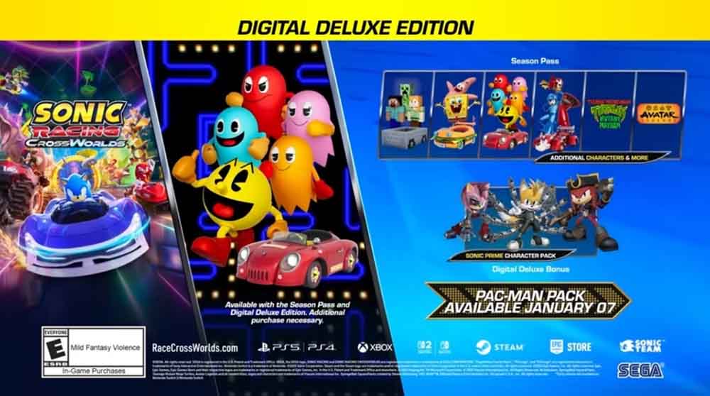 Sonic Racing: CrossWorlds está disponible en formato digital y físico para PlayStation 5, PlayStation 4, Xbox Series X|S, Xbox One, PC, Nintendo Switch, Nintendo Switch – Modelo OLED, Nintendo Switch Lite y Nintendo Switch 2.