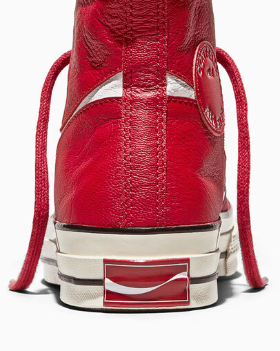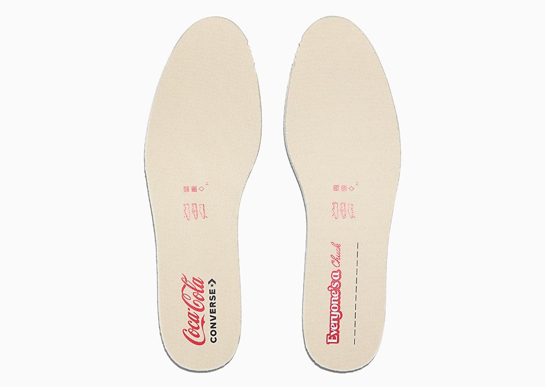 Las Converse x Coca-Cola Chuck 70 son la cereza del pastel de esta colaboración, ya que esta confeccionada en cuero, con los colores clásicos de la gaseosa que son el rojo y blanco. A esto se suma unas plantillas que asemejan una botella de Coca Cola, y en la parte trasera de la lengüeta se tendrá un espacio para personalizarla con el nombre que uno desee. A esto se suma una suela transparente, como si fuera el vidrio de una botella.