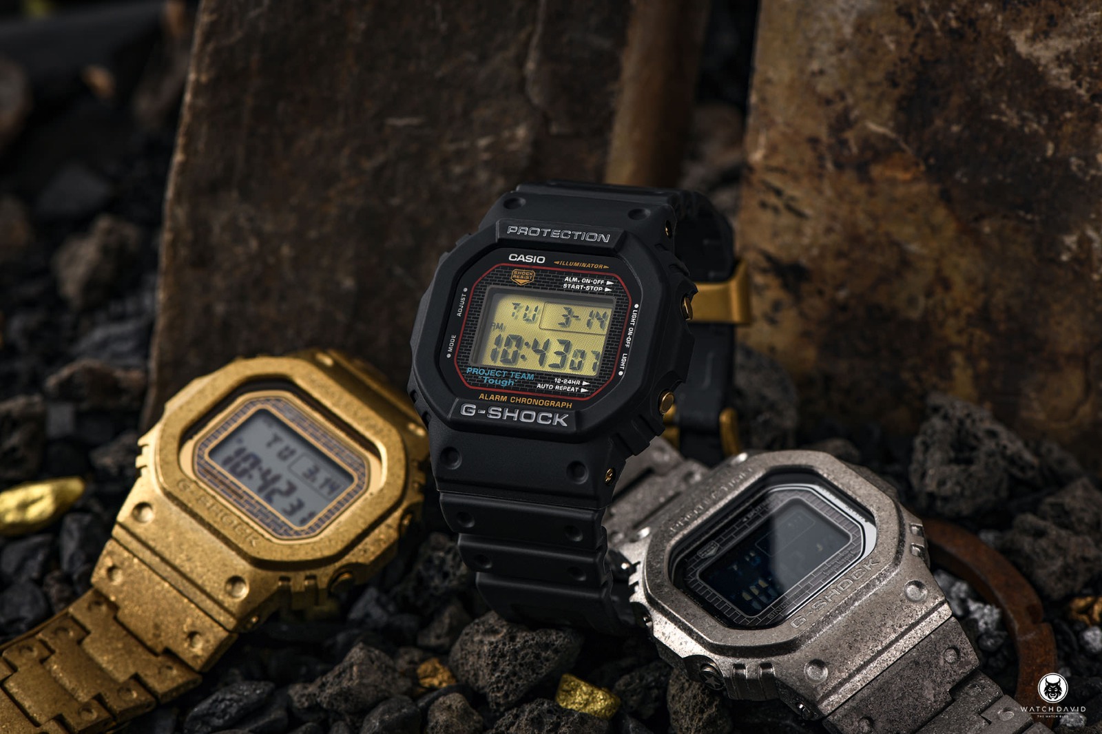 Esta edición limitada presenta tres modelos distintos: el DW-5040PG, GMW-B5000PS y GMW-B5000PG. Si bien los tres comparten el revolucionario tratamiento del acero inoxidable para mejorar su resistencia, cada uno tiene características particulares. Por ejemplo, el DW-5040PG rinde homenaje al primer G-SHOCK y cuenta con resinas de base biológica que contribuyen a reducir el impacto ambiental.