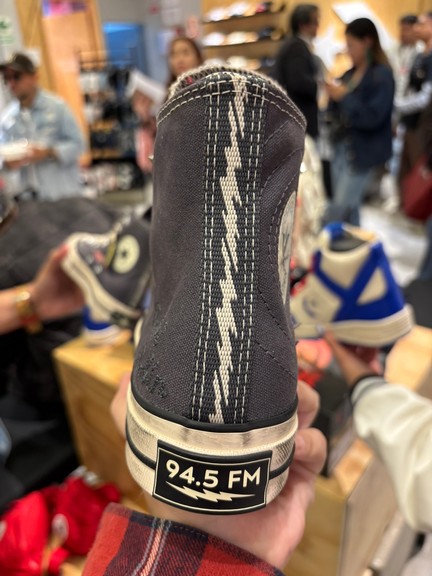 Otro modelo es la clásica Chuck 70 intervenida con un diseño old school desgastado con entresuela pulida, bordados de “Rockin’ Robin” y ondas de radio para conmemorar la estación WSQK. En el forro encontramos frases memorables de Robin, como “Beam Me Up This Place Sucks!” y estampados de “HellFire Lives” en la parte interna de la lengüeta. Para darle un toque diferente, tiene el parche All Star de tobillo con diseño de Demogorgon y el Upside Down.