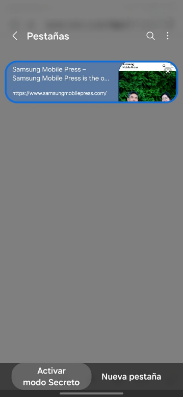 Samsung Internet > Icono del Administrador de Pestañas > Activar el Modo Secreto