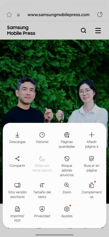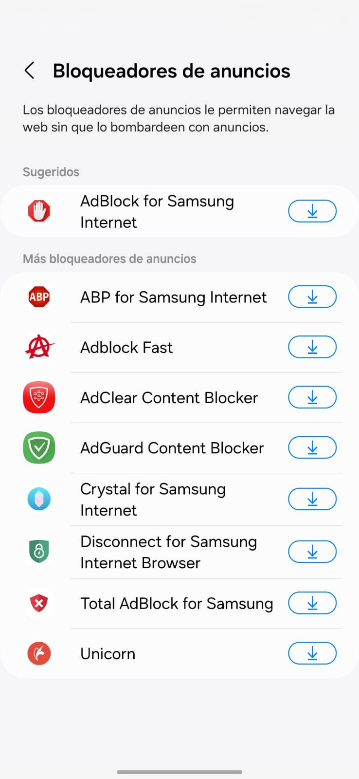 Samsung Internet > Menú > Bloqueadores de anuncios