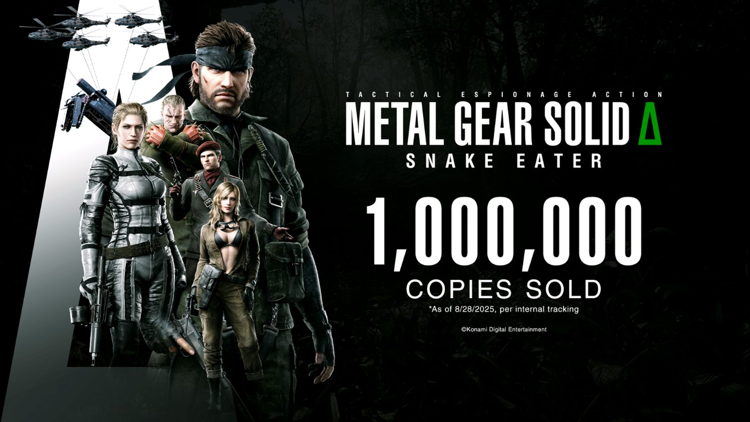 Konami Digital Entertainment anunció que METAL GEAR SOLID Δ: SNAKE EATER (METAL GEAR Δ) ha superado un millón de unidades vendidas en todo el mundo en PlayStation 5, Xbox Series X|S y PC (Steam).