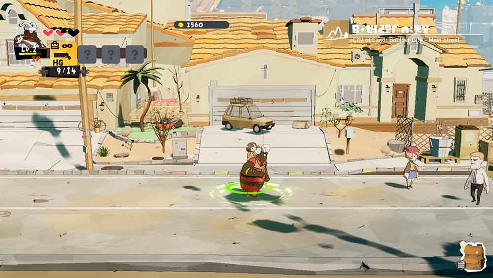 En lo jugable, la base es el disparo. Nuestro protagonista comienza con un revólver, pero rápidamente accede a un arsenal más amplio que puede intercambiar por versiones más potentes. Cada arma tiene su propio peso y utilidad, y el sistema de progresión permite subir de nivel para asignar puntos a estadísticas como salud, defensa, fuerza física o poder de ataque específico por arma. Esto le da un ligero toque RPG que se agradece, ya que sentimos que el demonio evoluciona conforme avanzamos. Además, puede personalizarse con atuendos cosméticos que refuerzan su carisma visual.