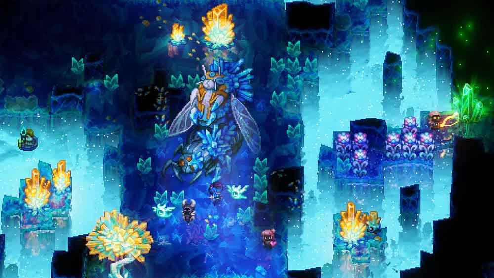 Ahora bien, pasando al apartado gráfico, Core Keeper nos ofrece un muy buen trabajo pixel art, el cual hace que el título se luzca en pantalla, pero aquí debo hacer una mención aparte, y es con relación a la iluminación dinámica, la cual hace que las luces y sombras destaquen en todo momento, como también darle vida a todo lo que nos rodea.