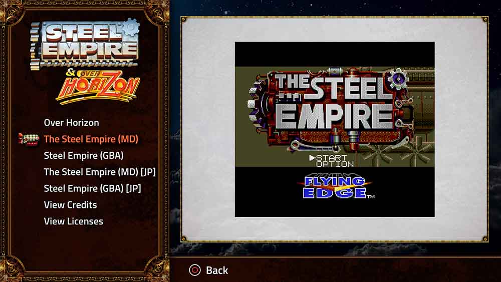 Pero de entre ambos juegos de esta colección, me quedo con Steel Empire, el cuala además cuenta con la inclusión de la versión para Mega Drive y su conversión para GBA que salió en el 2002, fuera de tener presentes las ROM japonesas como las occidentales, las cuales tienen referencias a Acclaim/Flying Edge.