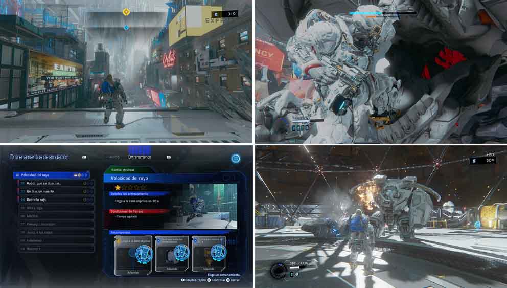 Este lugar está excelentemente trabajado, y particularmente me ha gustado mucho, ya que además podremos acceder a diversos tipos de interacciones con Diana, y comprender mejor a nuestros enemigos y acceder a desafíos, estos gracias al simulador de entrenamiento. Tras esto, y preparlo todo, pasaremos a la acción viajando en un tranvía a las diversas zonas.