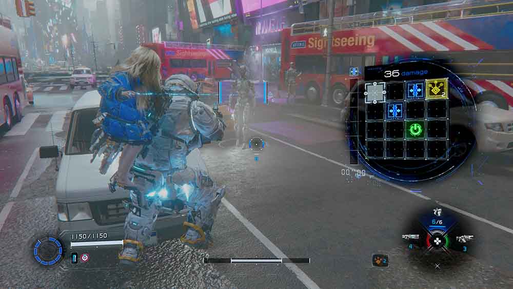 Al jugar veremos como nuestros dos protagonistas forman una simbiosis perfecta cuando entendemos sus funciones. Hugh será el gatillero, manejando una variedad de armas que poco a poco iremos expandiendo; mientras que Diana será la encargada de hacer que los enemigos sean vulnerables gracias al hackeo y de varios tipos (recorrido con los botones del control), y con la sobrecarga.