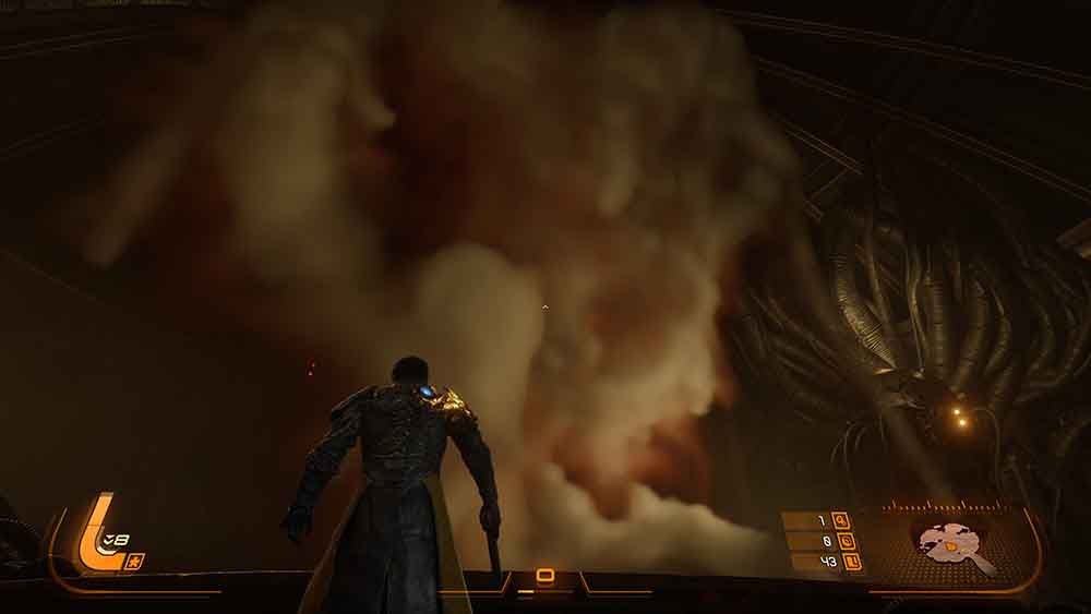Ahora bien, como en todo título de Housemarque, el estilo de juego, la acción y disparos es el punto clave. Aquí, nuestro movimiento es más que fluído, es rápido y velóz, ideal para el combate, el cual es intenso. Y a pesar de todo el caos que veremos en pantalla, el videojuego se resuelve de forma correcta. Y es que cuando los enemigos nos ataquen de forma grupal con proyectiles de diversos colores, entraremos al ritmo de juego de SAROS, a saltar, esquivar, bloquear con nuestro escudo y contraatacar, todo en fracciones de segundo.