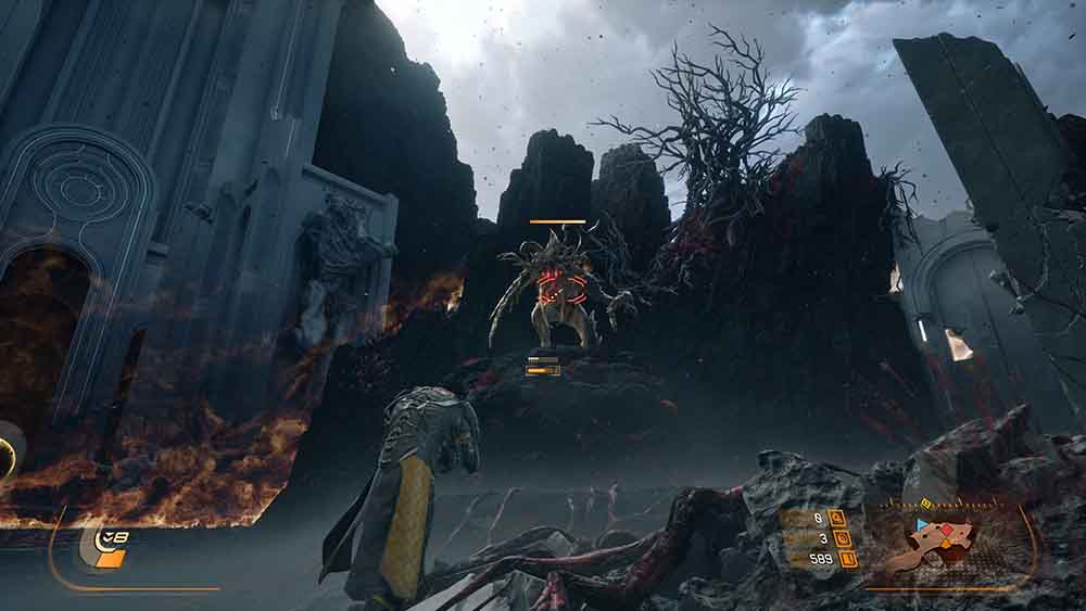 Otro aspecto a tener presente es El Eclipse, no es solo algo estético que cambia los parajes, sino que tiene un impacto muy fuerte en el juego mismo. Es más, cuando este se activa, los enemigos son mucho más fuertes, los entornos serán de mayor peligro, y algunos ataques causan Corrupción, algo que reducirá nuestra salud, o la disminuirá, aunque esto podemos purificarlo con nuestra arma de gran poder.
