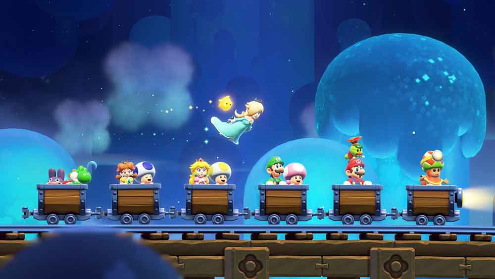 Hay niveles donde el escenario cobra vida, otros donde cambian las físicas o incluso momentos donde el juego se vuelve casi un espectáculo visual. Nintendo sabe exactamente hasta dónde llevar cada idea sin que se vuelva agotadora.