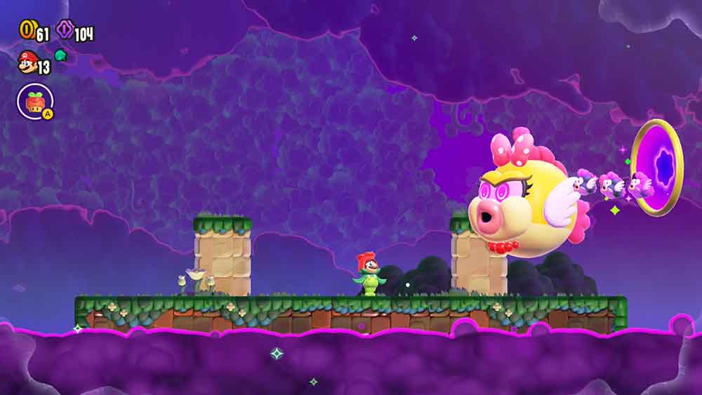 En general, la premisa de Super Mario Wonder es bastante sencilla: Mario y compañía llegan al Reino Flor, un lugar lleno de color y con mecánicas propias, donde las Flores Maravilla cambian por completo el desarrollo de los niveles. Este es, sin duda, el corazón del juego. Nunca sabes exactamente qué va a pasar cuando activas una, y eso hace que cada fase tenga ese factor sorpresa que mantiene todo fresco.