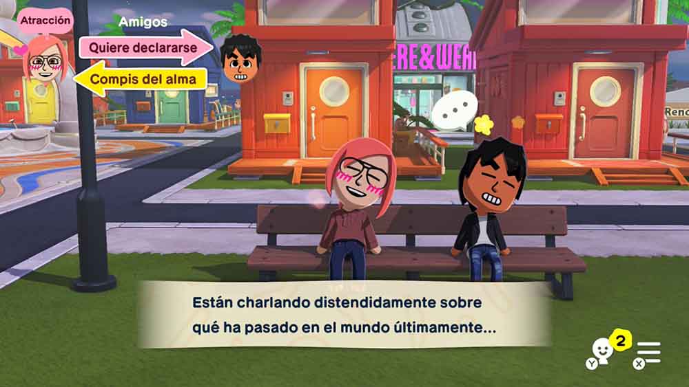 Uno de los cambios más notorios está en la profundidad de las interacciones. Los Mii ya no se sienten tan limitados como antes. Tienen más formas de expresarse, más diálogos y reacciones que hacen que cada uno tenga un poco más de personalidad. No deja de ser un sistema con cierto grado de aleatoriedad, pero está mejor disimulado, lo que ayuda a que las historias que se generan se sientan más naturales.