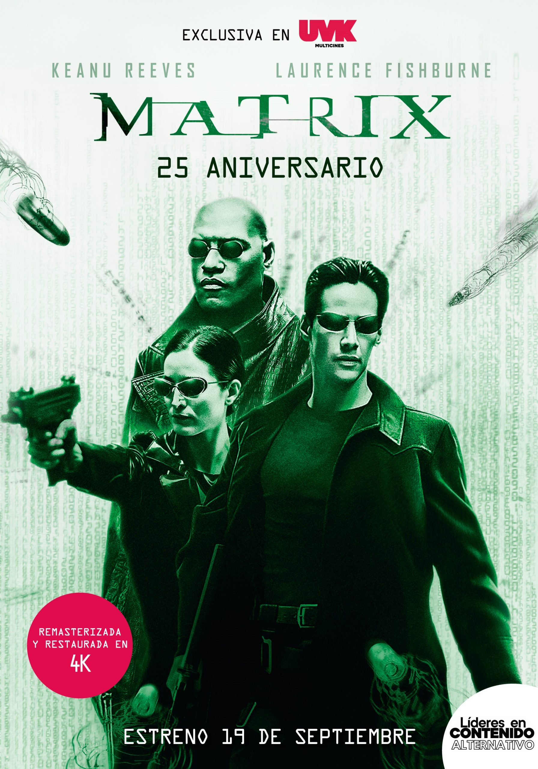 En 1999 el cine de ciencia ficción y los efectos especiales cambiaron por completo, esto gracias al comienzo de la franquicia de Matrix, que fue protagonizada por Keanu Reeves y Carrie-Anne Moss, ahora por su 25 aniversario la estupenda cinta regresa a los cines, y en este caso a las salas de UVK Multicines de Patio Panorama y UVK San Martín