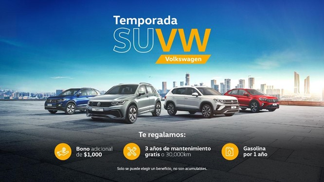 ¿Estás buscando una SUV que ofrezca comodidad y seguridad? Volkswagen presenta la temporada SUVW, en la cual podrás encontrar modelos como Nivus, T-Cross, Taos, Tiguan, Teramont y Touareg; que aportarán tecnología y medidas de protección a la experiencia de conducción.