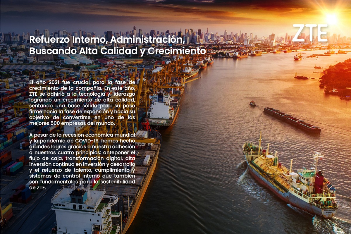 También se hace referencia a reforzar la gestión interna y perseguir un crecimiento de alta calidad. Es aquí en donde la empresa ha establecido asociaciones con más de 500 socios globales, describiendo casi 100 escenarios de aplicación 5G innovadores para fábricas en diferentes países como China. En cuanto al control interno y la gobernanza corporativa, ZTE ha establecido un sistema completo para la gestión de riesgos y el control interno, mejorando el sistema de administración y continuidad del negocio (BCM). Como resultado, se perfeccionó la continuidad operativa, la eficiencia de la facturación y se redujo los riesgos operativos.